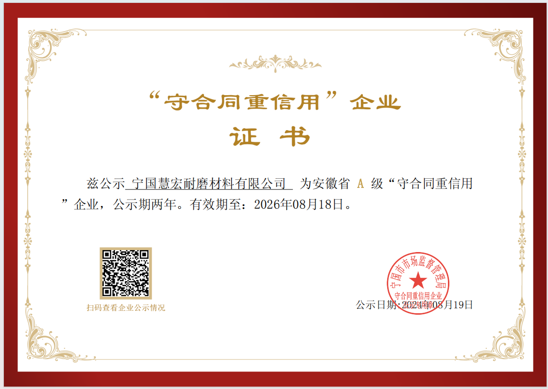 您好!歡迎訪問寧國慧宏耐磨材料有限公司官方網站!